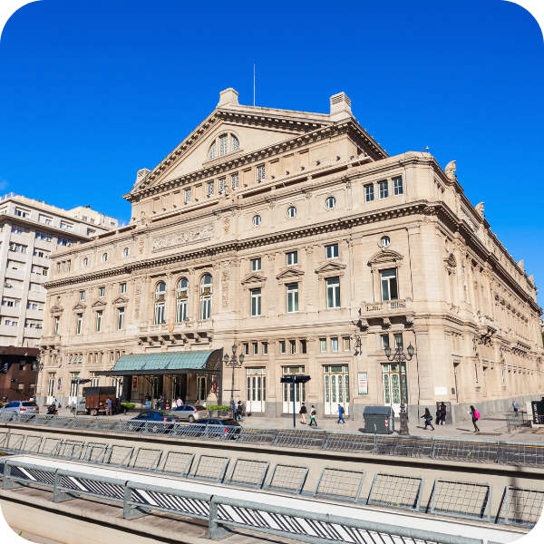 Teatro Colón e Obelisco – dois dos maiores símbolos culturais e visuais da capital.